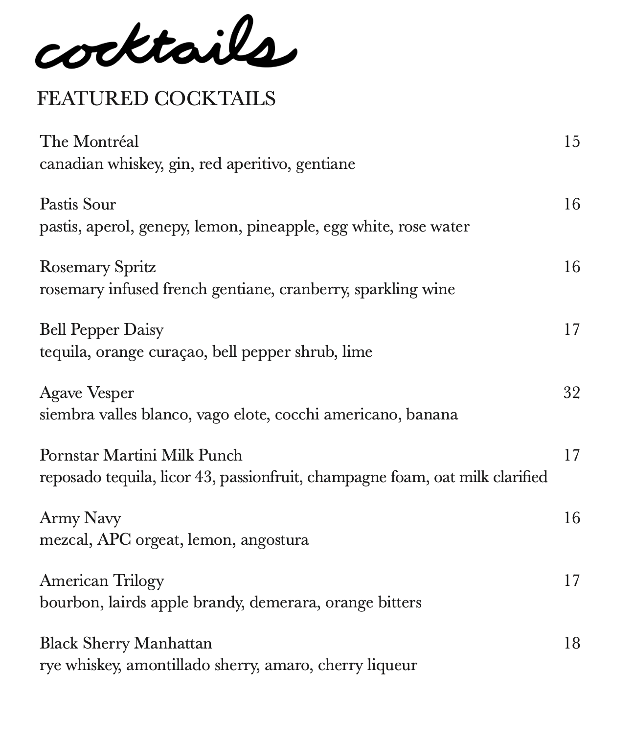 Download PDFWhile we do our best to keep our menu current, please keep in mind that we change it daily.